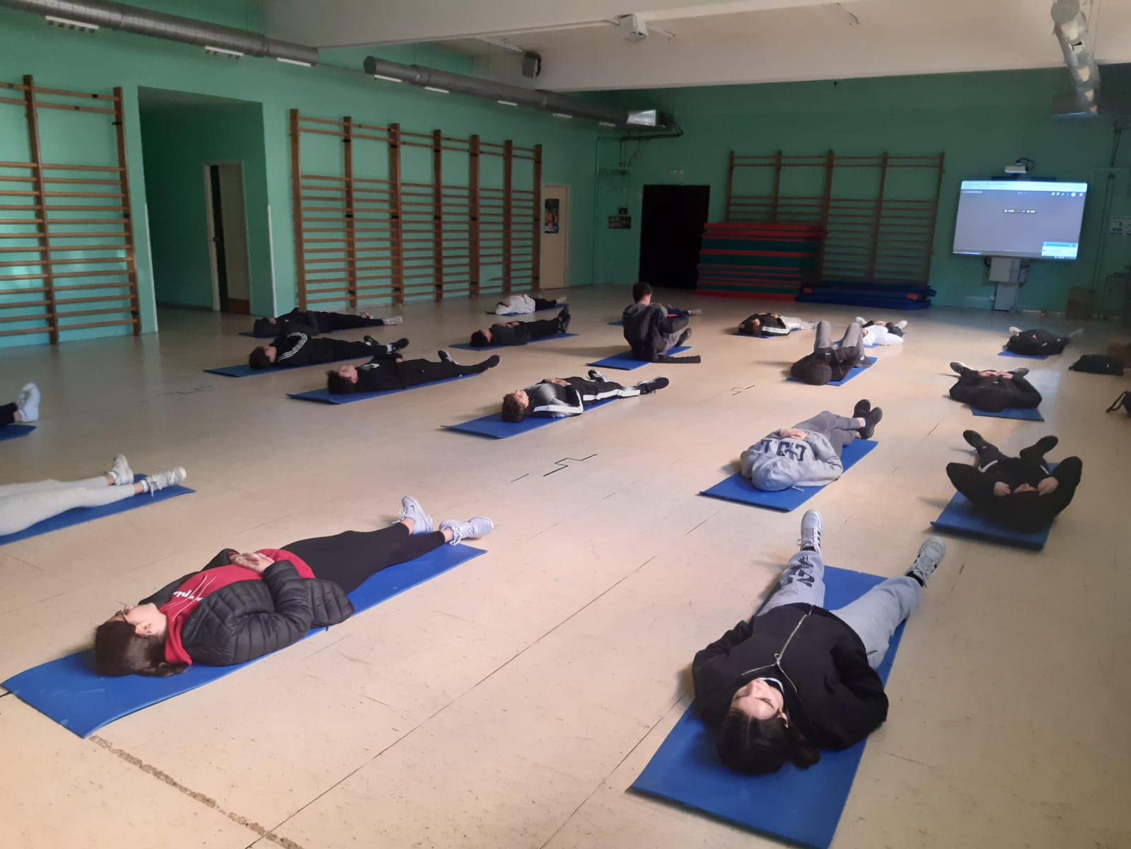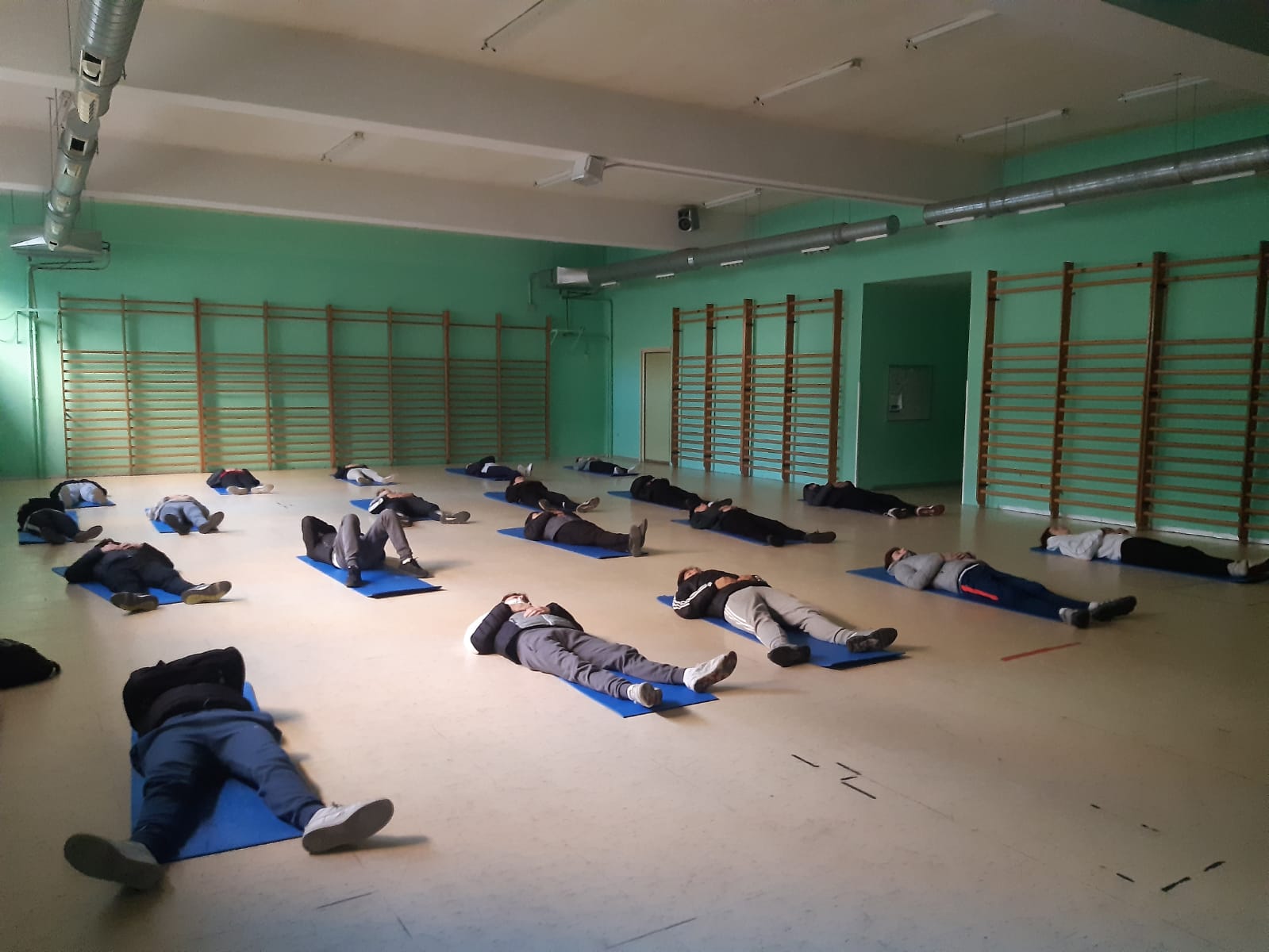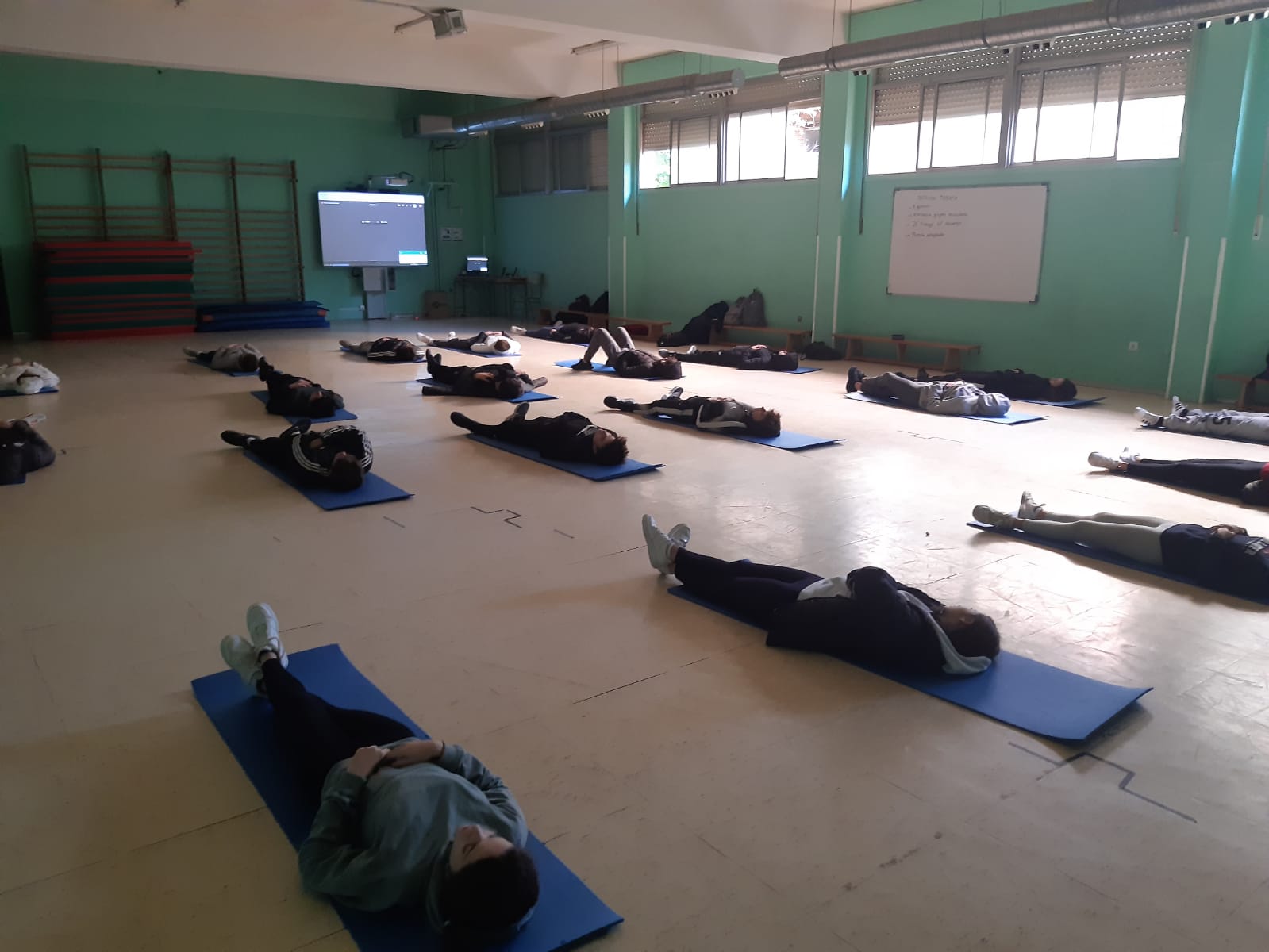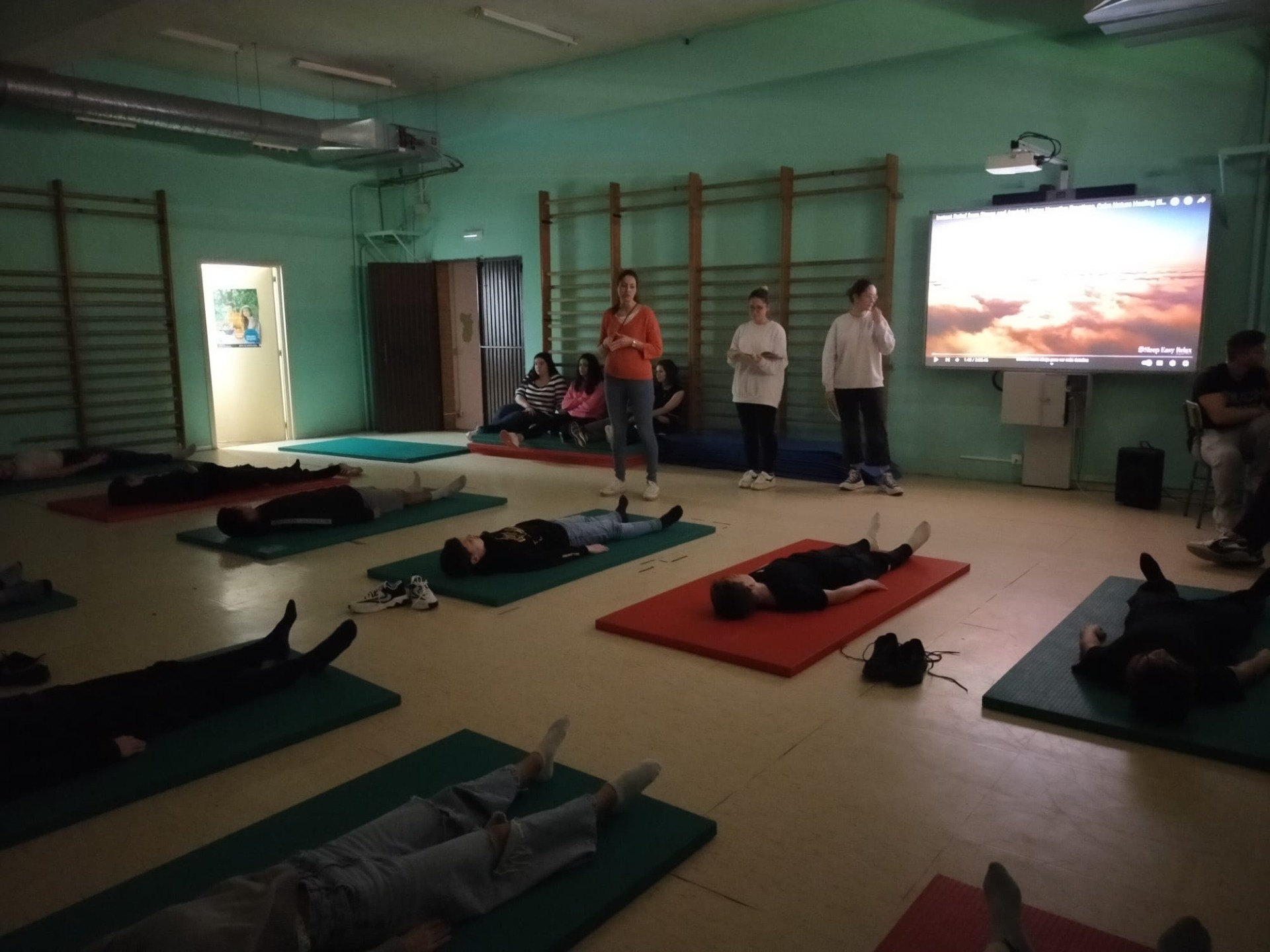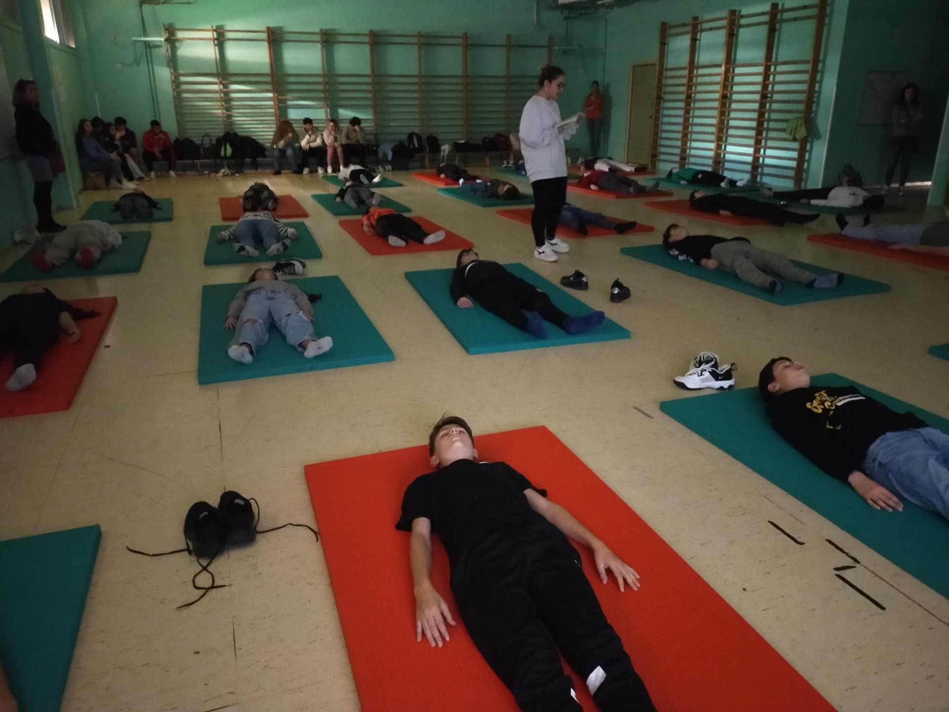 El taller estaba planteado en dos partes: La primera estaba dedicada a diferentes ejercicios de respiración, en pie y en círculo, y la segunda fue acostados colchonetas, donde realizaron una visualización y luego un ejercicio de tensión-relajación muscular, en el que aprendieron a reconocer la tensión corporal y a relajar los músculos.