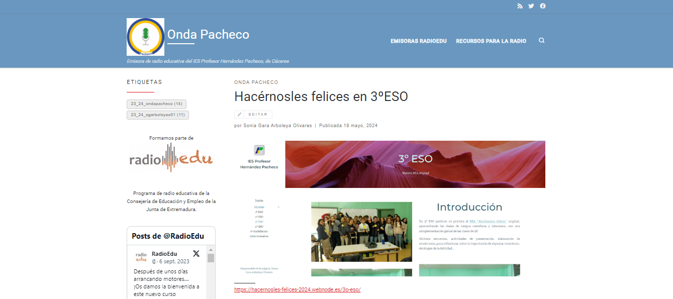 Los alumnos de 3ºA y 3ºB explican su experiencia y lo que han aprendido con este proyecto en el siguiente programa de radio de Onda Pacheco (RadioEdu):