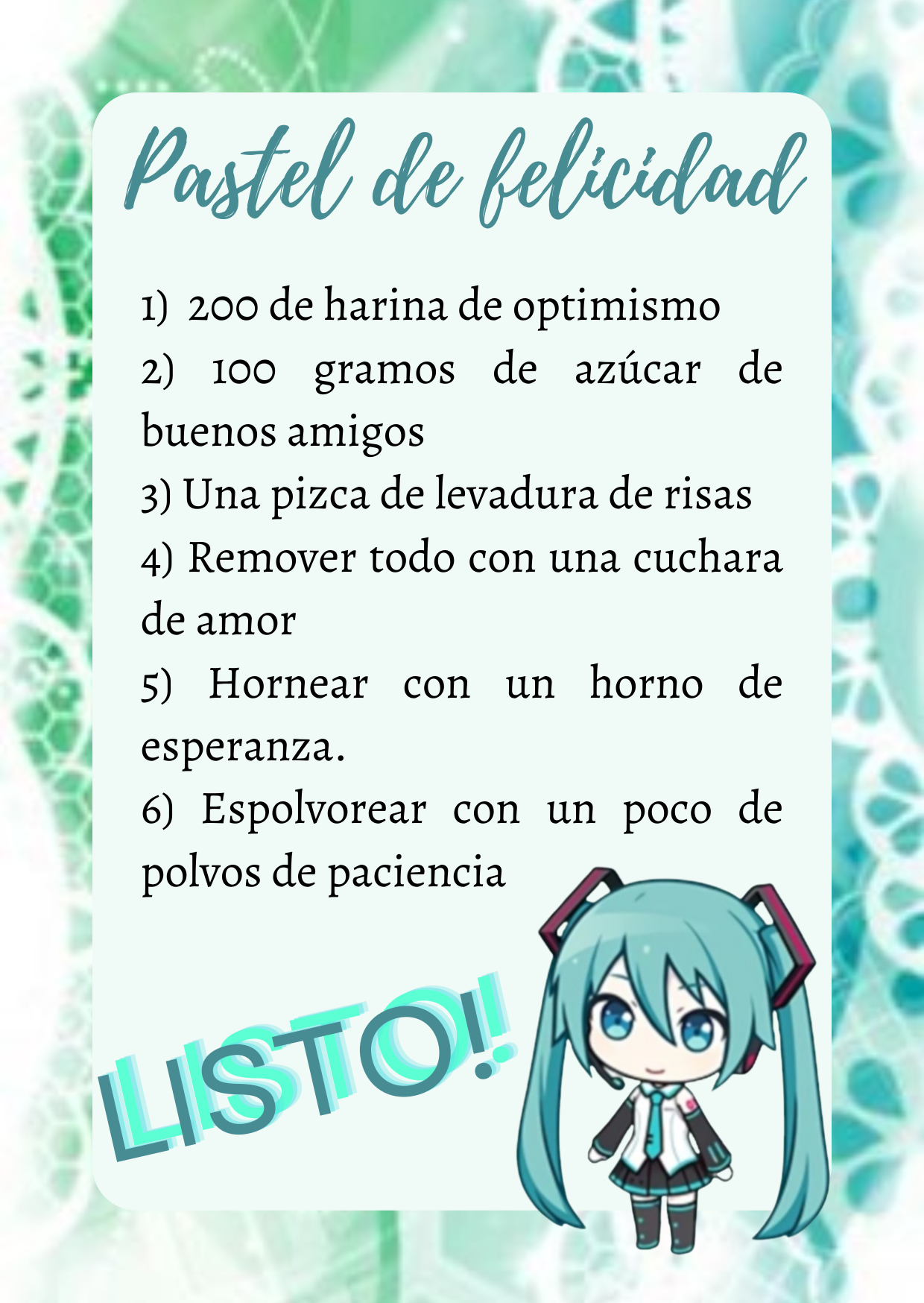 -Si la felicidad quieres alcanzar, muchas sonrisas debes generar.