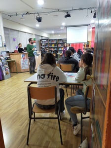 Para conmemorar el Día Internacional de la Eliminación de la Violencia contra la Mujer, el día 24 los alumnos de 4º participaron en un escape room multidisciplinar que hacía reflexionar sobre las heridas sufridas por las víctimas del maltrato a través de una serie de retos. Después de resolver los retos conseguían los números para abrir un candado numérico aleatorio de una caja donde guardaban las heridas sufridas de una chica ficticia de dieciséis años, llamada Paz, en un cartel creado por nuestro compañero de Plástica.