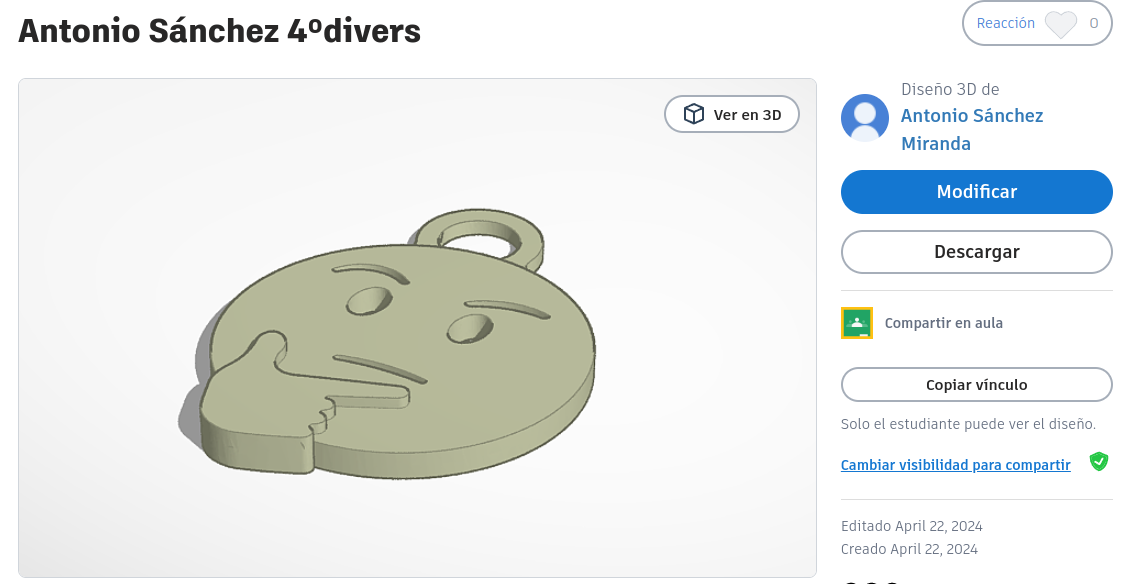El grupo de 4º ESO de Diversificación trabajó las emociones primero viendo un documental de Librarium Cine La Aventura del Saber. Serie Documental. La mente humana. Las emociones. El grupo reflexionó sobre el tema y comentó sus impresiones. Además, en Tinkercad los alumnos diseñaron en 3D dos emoticonos uno relacionado con cuando tienen un buen día y cuando tienen un mal día para reflexionar sobre la importancia de expresar emociones. Primero, investigaron sobre las fichas de emoticonos y